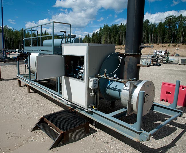 For use anytime hydrating or freezing is a concern. Roska line heaters are modern, electronically controlled systems fully compliant with CSA B149.3, including a burner management system with 1-second response. A leap beyond legacy pneumatically controlled line heaters. System includes high- and low-temperature and low-glycol, flame-fail shut-downs. Similar design to the 3" line heater model.