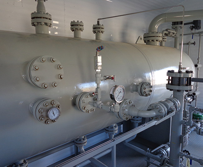 This high-capacity model is great for deployment as an inlet separator in a mid-sized gas plant, as a group separator for a large, high-rate multi-well pad, or as a test separator for a high-rate well. This approach allows individual wells to be tested, with production then allocated from all the wells in the group. Like all our separators the 48" X 15’ horizontal model is rated for sour service.
